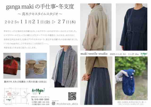 11月21日~27日は真木千秋さんの工房、ganga(ガンガ)で作られたぬくもりある作品たちが並びます。