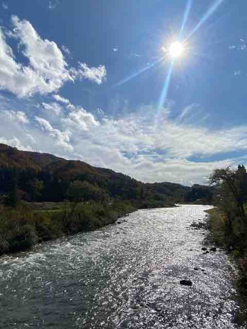 川の流れをキラキラと照らす太陽